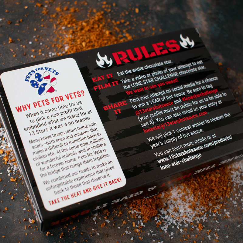 Post your attempt on social media for a chance to win a YEAR of hot sauce. Be sure to tag @13starshotsauce and #lonestarchallenge (your profile must be public for us to be able to see it).